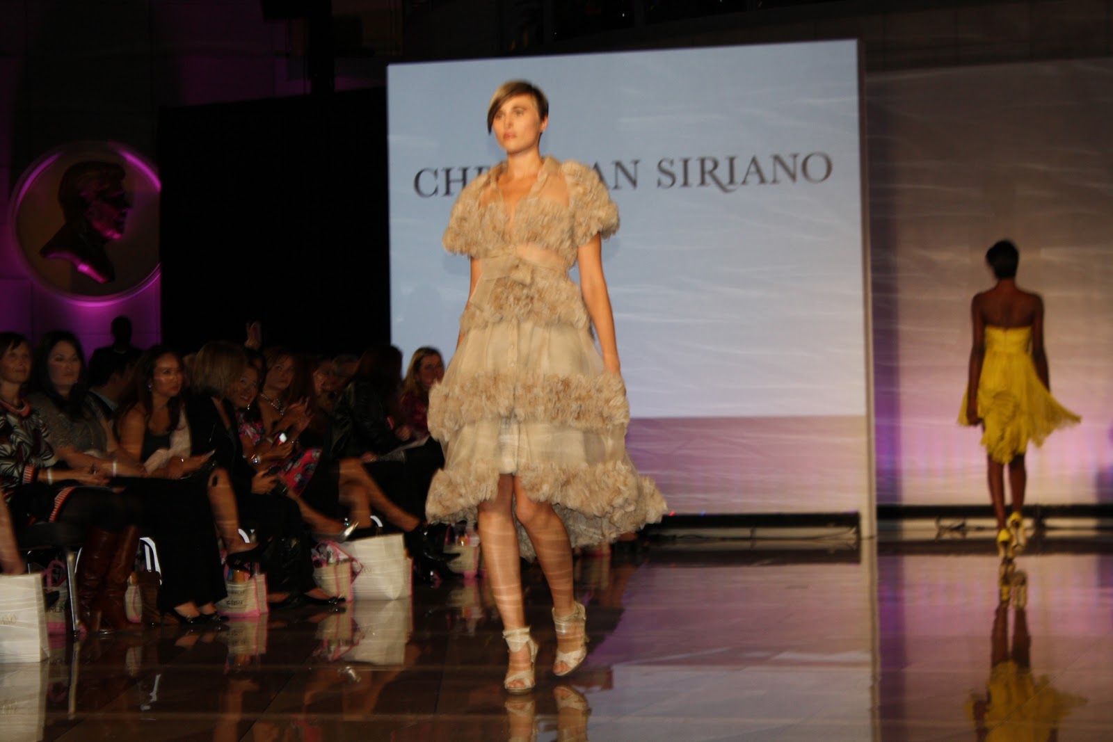 Christian's Spring 2012 Collection that he showed at Pink Rocks the Runway was spectacular! My friend, Marcy Brannon of Blue Eyes Curly Qs, and I snapped these photos. Loved the mix of neutrals and neons - amazing. Oh, and check out those tortoise heels! I want a pair for spring already.